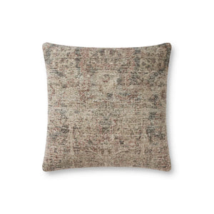 Inspired by vintage rugs, this accent pillow features variegated earth tones on a beige background.