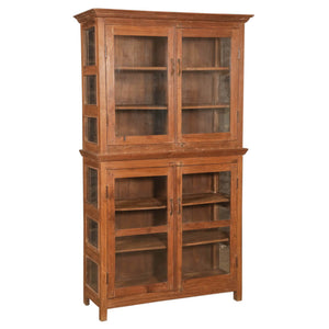 This stately reclaimed wood cabinet offers an elegant solution for showcasing your belongings. It has 4 glass doors that reveal a series of shelves, perfect for adding storage to the living room, dining room, or entryway.?