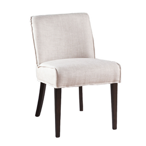 This Buddy dining chair has a sturdy hardwood frame and is offered in your choice of beige linen or genuine leather upholstery. With the leather upholstery, there is elegant stitching along the front to add an eye-catching touch. A perfect addition to any dining room with its timeless and refined appearance.