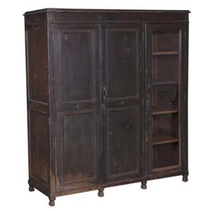 Constructed from teak wood in a dark finish, this cabinet features hidden storage behind two wardrobe doors and five shelves enclosed by glass. An ideal organizational piece for your home.?