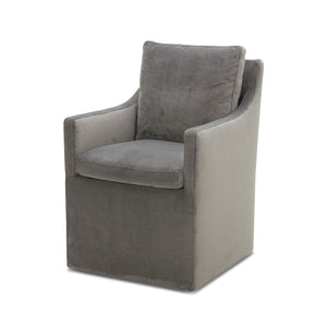 Elegant and plush, the Gigi arm chair elevates any dining room. Available in a variety of sophisticated colors and finishes.?