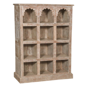 Sophisticated design meets sustainability in this bohemian bookcase crafted from reclaimed wood. This bookshelf features scalloped details and unique patina for a touch of texture in any space.