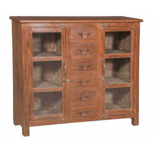 Teak Cabinet with Glass and Drawers