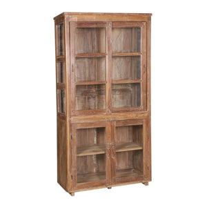 This charming vintage teak wood cabinet features glass doors and shelving that make it ideal for adding storage to the living room, office, or entryway.?
